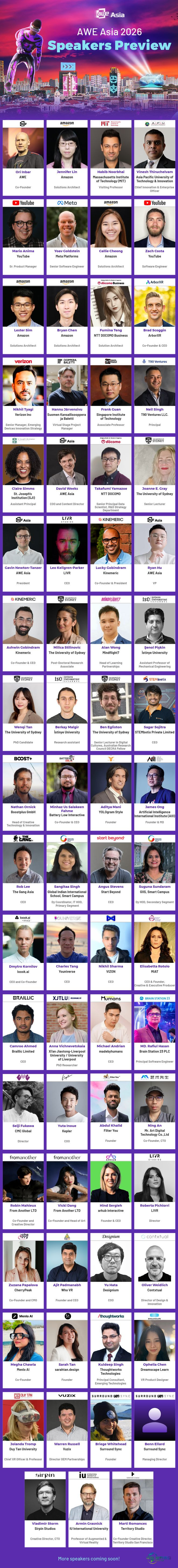 无论您是XR行业从业者、科技领域研究者,还是对前沿科技抱有浓厚兴趣的探索者,如果您对AWE Asia 2026新加坡大会抱有期待,现在正是抢购门票的黄金时刻。与全球XR领域的创新者们齐聚一堂,共同参与这场智慧交锋与灵感汇聚的行业庆典吧!更多精彩内容即将公布,期待2026年在新加坡博览中心与您相会!