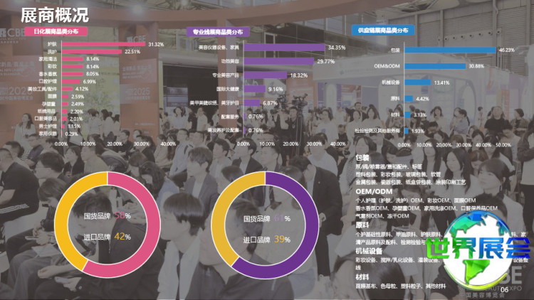 化妆品品牌展区:护肤、彩妆、香水香氛、面膜、个人护理、男士护理、洗护、家用仪器、家用清洁、口服保养品、美妆工具、连锁加盟