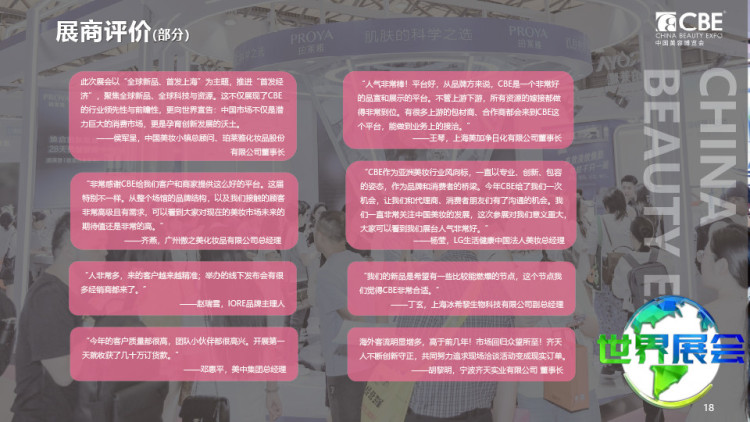 China Beauty Expo作为亚洲地区顶尖的美容行业贸易展览,亦是业界人士拓展中国市场乃至亚洲美容领域的优选平台。