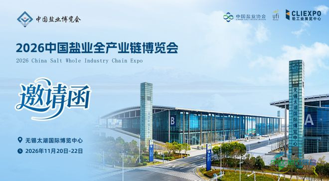 时代浪潮奔涌,千帆竞发,盐业之路,携手共进。2026年11月20日至22日,无锡太湖国际博览中心,诚挚邀请您拨冗出席,与业界同仁并肩前行,共同助推中国盐业高质量发展步入新阶段!