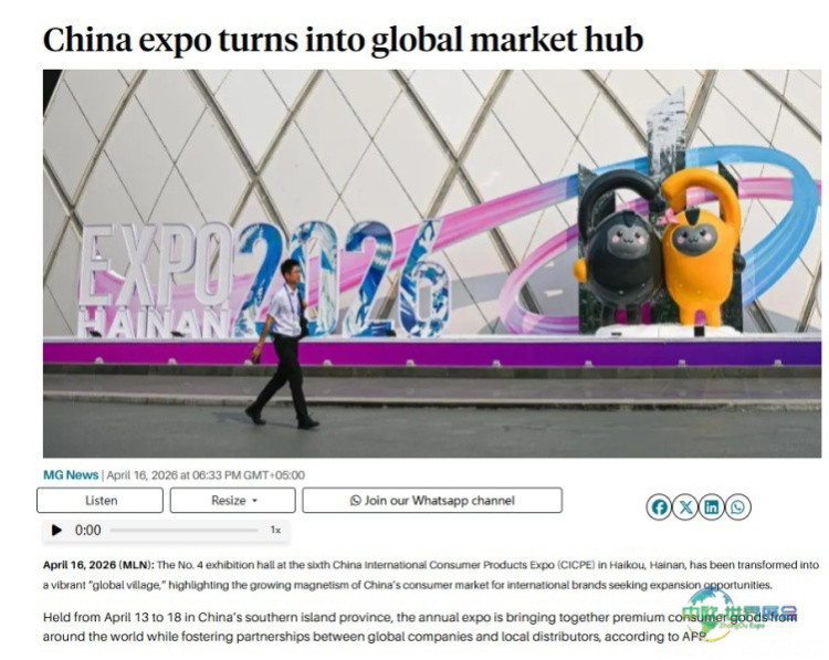 文章最后引用专家的观点说,中国的消费趋势正在发生变化,对更智能、更环保、更优质产品的需求与日俱增。消博会在链接全球供应商与中国日益壮大的消费群体方面扮演着关键角色。