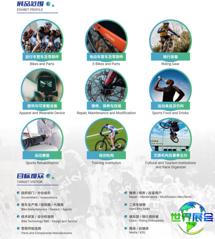 自行车整车及零配件、电动自行车整车及零配件、骑行装备、服装与智能穿戴设备、维修保养与改装服务、运动营养品及饮品、运动康复服务、培训教育机构、文化旅游机构及赛事组织