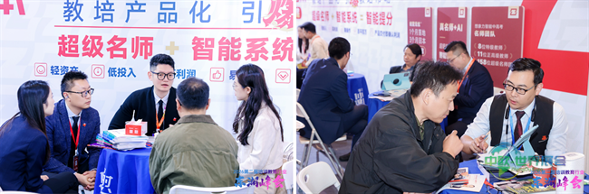 展会现场气氛高涨,众多教育机构创始人和教育创业者纷纷驻足,沉浸式体验智能导学系统的完整学习路径。结合真实提分成果展示与成功案例的深入剖析,他们全方位感受到了项目的优势。