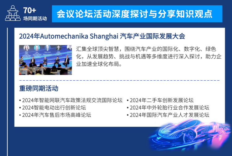 在“双循环”新发展格局形势下,中国汽车市场的发展和新旧动能的转换为汽车产业带来了前所未有的机会。中机国际董事长夏闻迪表示,汽车行业如何抓住契机、全面提升全球视野,研发更高科技水平、更先进技术内容的生产方式,是我国汽车产业转型升级的关键所在。围绕展会主题,上海汽配展首次推出了“汽车产业国际发展大会”,并策划了丰富多彩的活动和展示区,全面展示了汽车行业的顶尖技术和风采。让参与者能够深入体验汽车产业的创新魅力,感受科技与产业的紧密融合,见证未来行业的发展方向。