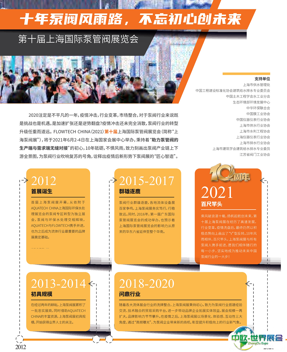 上海国际泵阀展览会(FLOWTECH CHINA)是中国最大规模、最高品质的泵管阀展之一,是业内高品质的泵管阀展览会,旨在通过集中展示国际流体机械行业的变革与进步,促进产业上下游的沟通与合作,打造一站式采购平台。