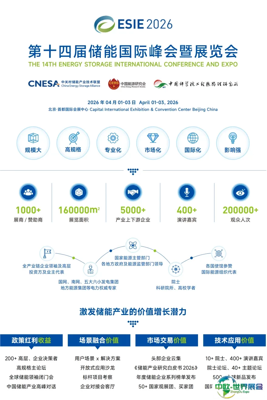 北京国际储能展览会-北京储能峰会(ESIE)以其专业的视角、强大的影响力已成为全球首屈一指的储能品牌展会,尤其是每年的开幕式报告、高峰对话以及分论坛主题都会成为业界热议话题。