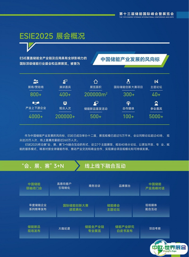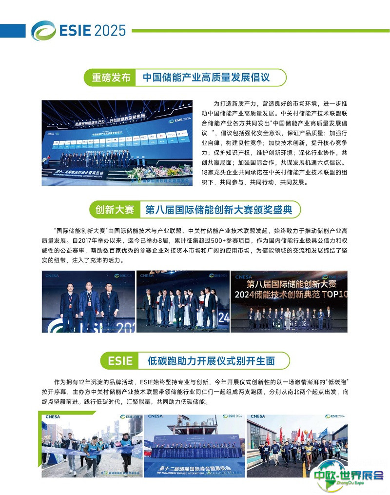 北京国际储能展览会-北京储能峰会(ESIE)设立于2012年,致力于搭建务实高效的全球储能合作网络,探索商业模式。对接资本与市场,推动产业机制的建立,促进储能产业健康发展。ESIE已经成长为全球领先的专业品牌会展,是全球储能领域颇具影响力的产业交流对接平台之一,被誉为储能业内含金量高、指导性强的高规格会展,是中国储能产业发展的风向标。