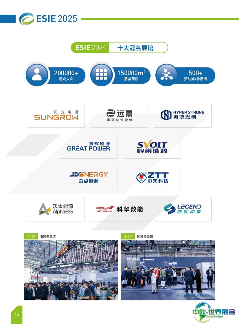 随着产业的不断发展,此次ESIE展会规模空前,设立了12大主题展馆,展览面积近150000平米,汇聚了1000+储能一线企业,同期举办超过40+主题论坛和特色活动,200+参赛项目集体亮相,400+行业权威专家精彩演讲,预计将有20万+来自政府机构、监管单位、科研院所、电网公司、发电集团、系统集成商、储能技术提供商、储能配套设备提供商、能源运营商等行业同仁齐聚。共同聆听产业前沿之声,共探产业发展之势,是每一年业内不能错过的储能产业盛宴。
