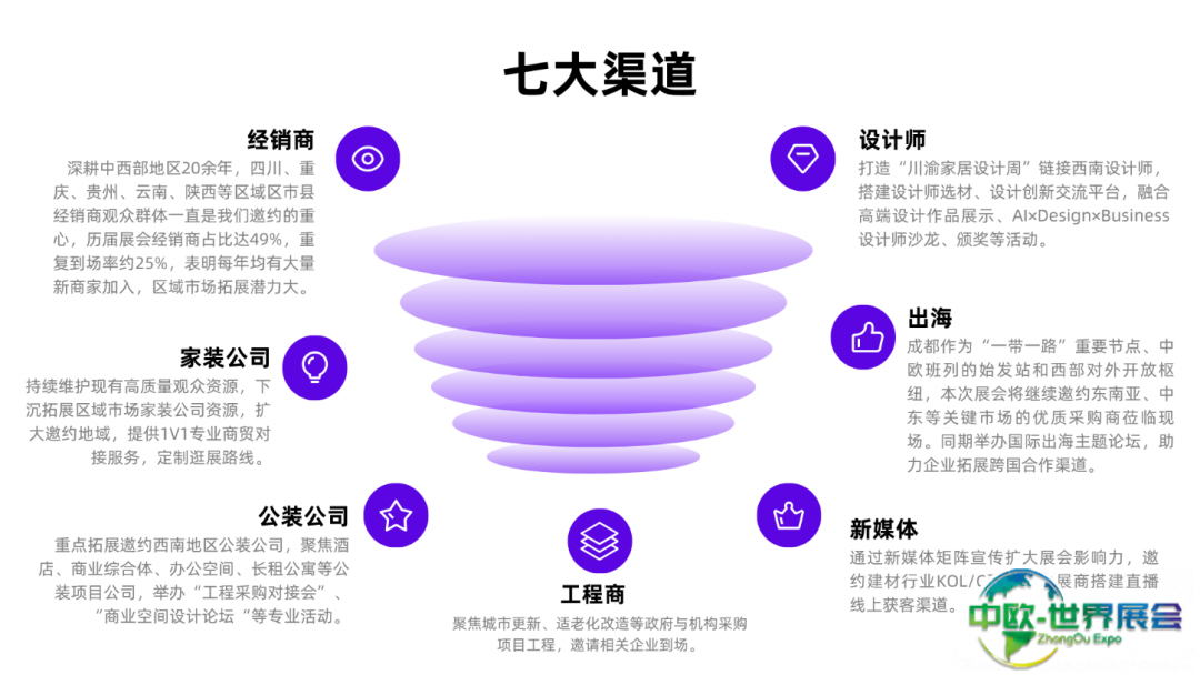 通过这七大渠道的协同发力,中国成都建博会将确保展会现场汇聚产业生态中各关键环节的决策者与影响者,实现商贸对接的高质量与高效率。