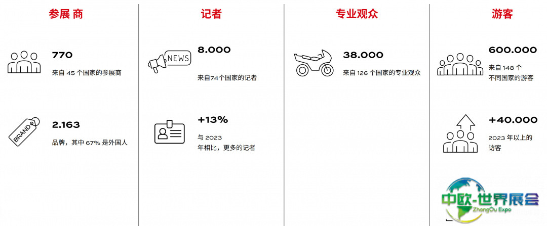 多年来,意大利两轮车展受到全球摩托车生产商、经销商及行业专业人士的瞩目,被认为是中国摩托车及零配件制造商进军欧洲市场的门户,也是与全球摩托车行业同仁进行交流和沟通的平台。
