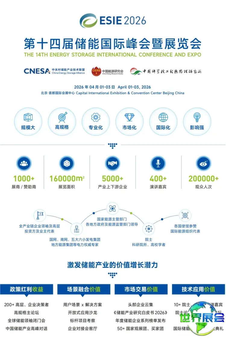 北京国际储能展览会-北京储能峰会(ESIE)创立于2012年,旨在构建高效务实的全球储能协作网络,探索商业路径。它连接资本与市场,推动产业机制建设,促进储能行业稳健成长。ESIE已发展成为全球顶尖的专业品牌会展之一,是储能领域极具影响力的产业交流与对接平台,被视作业内规格高、指导性强的权威会展,是中国储能产业发展的风向标。