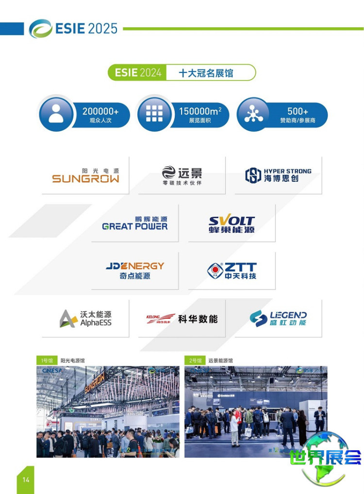 随着行业持续进步,本届ESIE展会规模创下新高,共设12大主题展馆,展览面积接近15万平方米,汇聚超过1000家储能领军企业。同期将举办40多场主题论坛与特色活动,200多个参赛项目集中展示,400多位行业权威专家发表演讲,预计将吸引20余万名来自政府机构、监管单位、科研院校、电网公司、发电集团、系统集成商、储能技术供应商、配套设备商、能源运营商等领域的专业人士共聚一堂。共同探讨产业前沿动态,把握行业发展脉搏,是每年不容错过的储能行业盛宴。